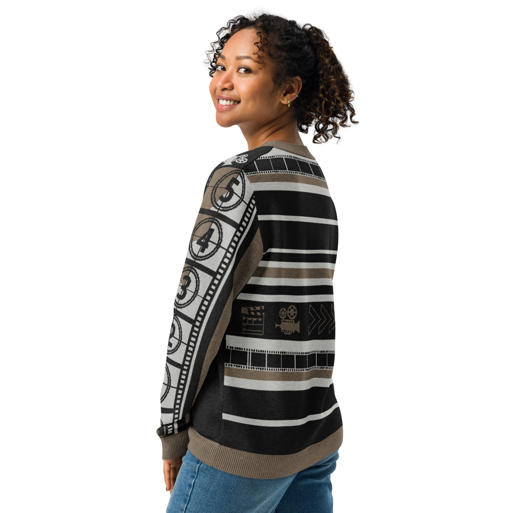 Step into the spotlight with our Film Lover Movie Knitted Crew Neck Sweater — a wearable love letter to storytelling and cinema.